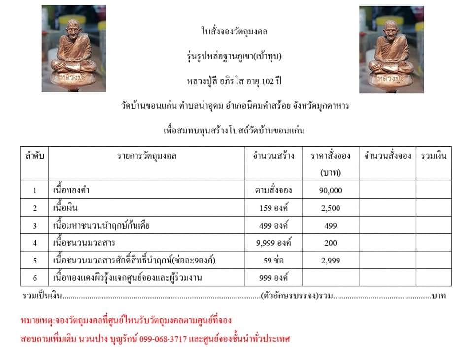 *** เปิดจอง// รูปหล่อฐานภูเขา (เบ้าทุบ) รุ่นแรก หลวงปู่สี อภิรโส อายุ 102 ปี วัดบ้านขอนแก่น จ.มุกดาหาร