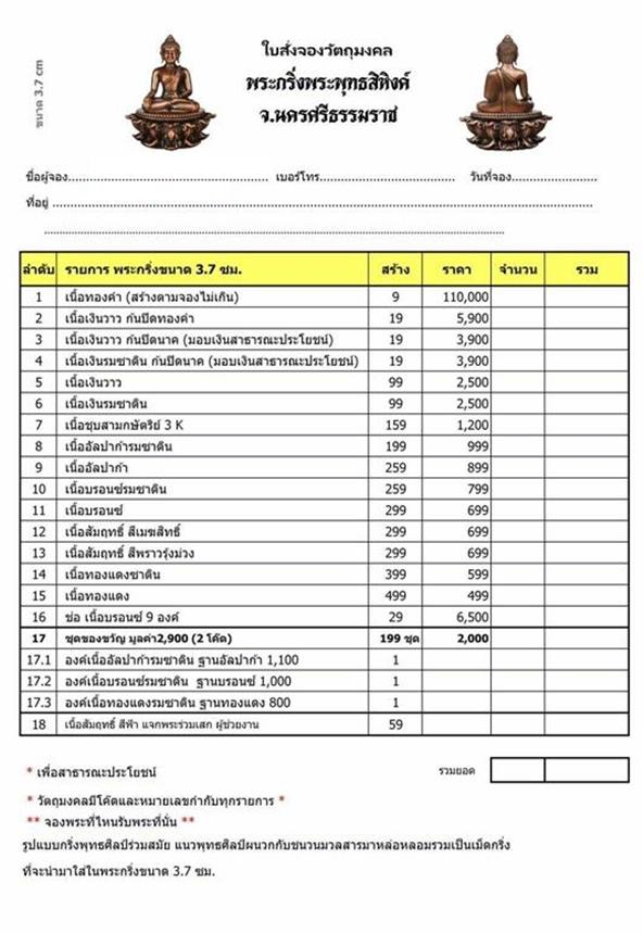 รายการ 16.ช่อ เนื้อบรอนซ์ 9 องค์ ราคาจอง 6,500.-บาท มียอด= สอบถาม