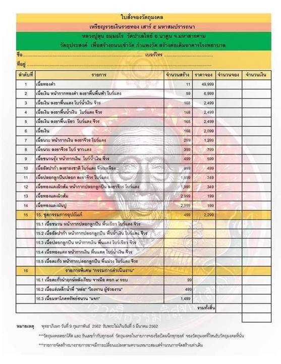 รายการ 7.เนื้อนวะ หน้ากากเงิน ลงยาจีวร โบว์แดง ราคาจอง 1,299.-บาท มียอด = 2