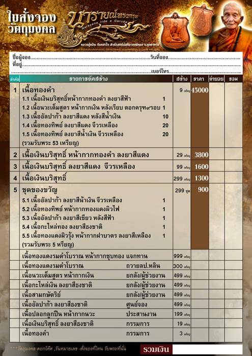 รายการ 3.เนื้อเงินบริสุทธิ์ ลงยาสีแดง จีวรเหลือง ราคาจอง 1,600.-บาท มียอด= สอบถาม