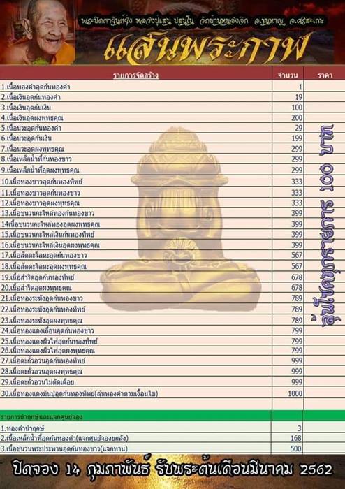 *** สมนาคุณสั่งจองยกลัง 100 องค์ รับฟรี!!