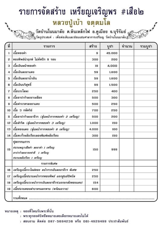รายการ 12.เนื้อสำริด ราคาจอง 150.-บาท มียอด = 20