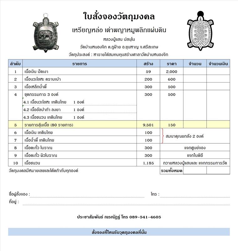 รายการ 4.ชุดกรรมการ (รับพระ 3 เหรียญ) ราคาจอง 500.-บาท มียอด= 10
