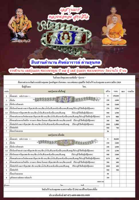 1 เนื้อทองคำ หนัก 5 บาท + - สร้าง 9 เส้น ราคา 150,000 บาท โทรถาม