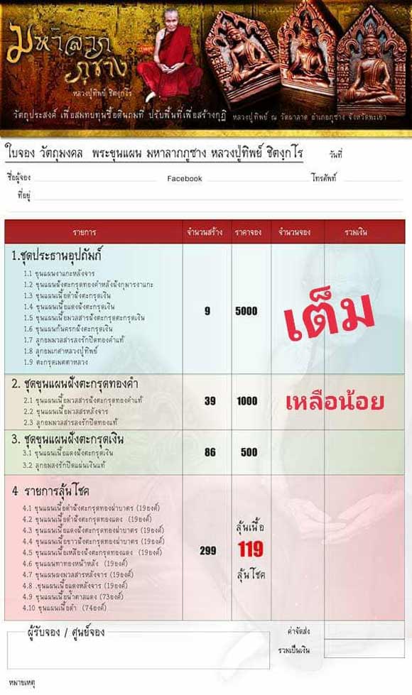 รายการที่ 3 ชุดขุนแผนฝังตะกรุดเงิน ราคาจอง 500 บาท มียอด 4 ชุด