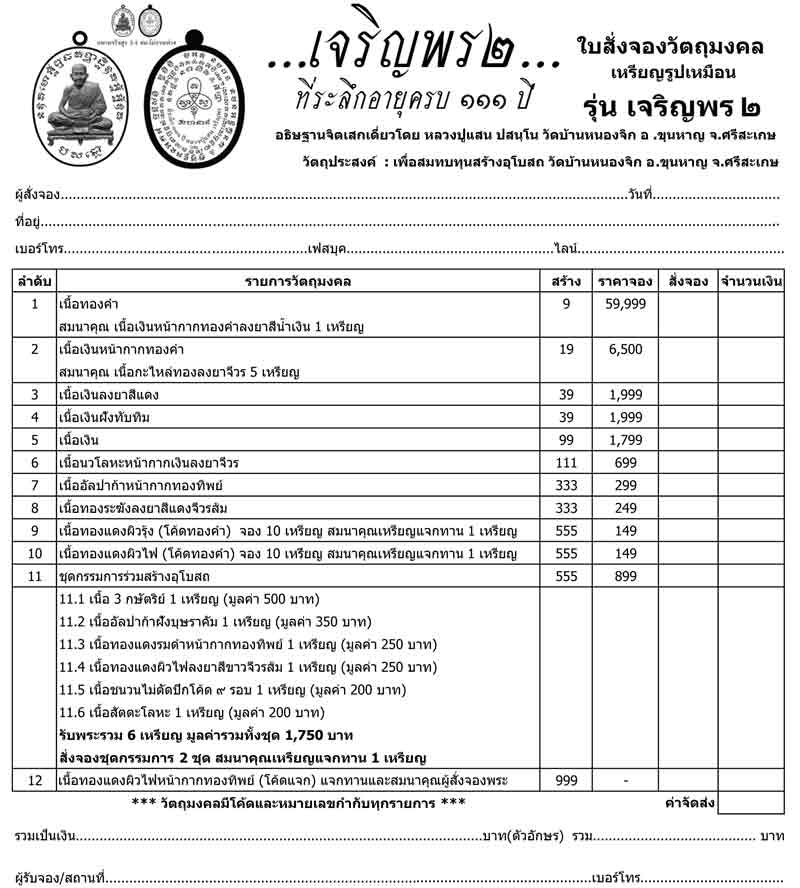 เปิดจองตามรายการราคาวัดครับ