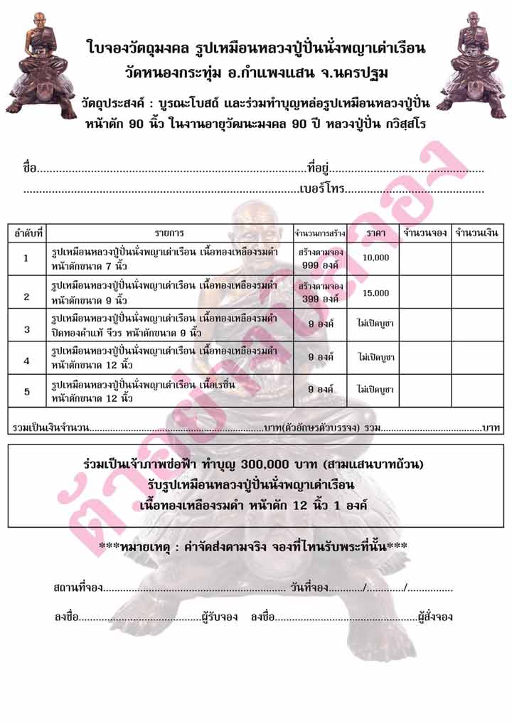 ค่าส่ง 400 บาท/องค์ หรือ ติดต่อรับเอง