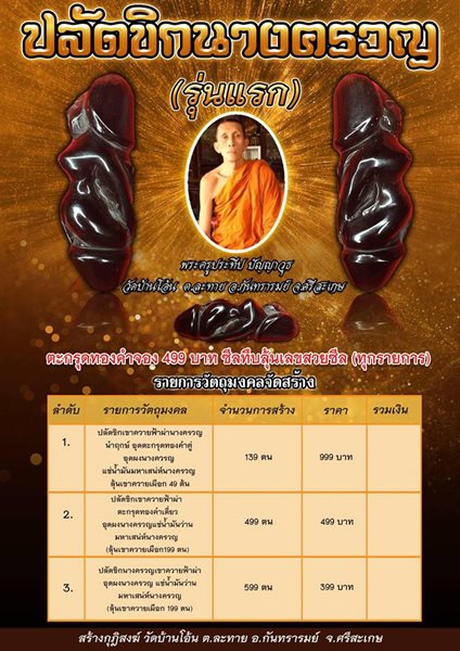 สร้าง 599 ตน ( ลุ้นเขาควายเผือก 199 ตน ) ราคาตนละ 399 บาท มียอด 50 ตน