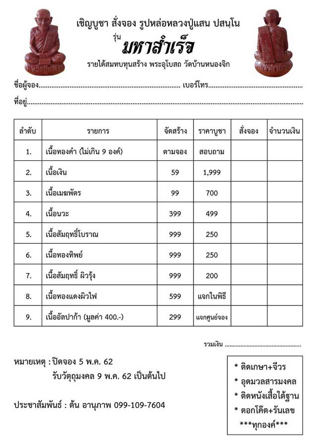 2.เนื้อเงิน มี 1 องค์ๆละ 1,999 บาท