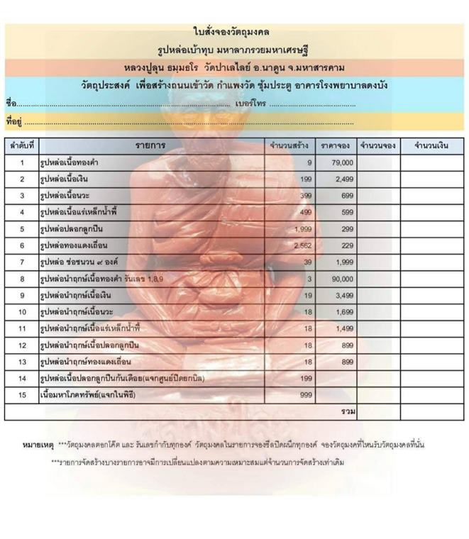*** เปิดจอง// รูปหล่อเบ้าทุบ "มหาลาภรวยมหาเศรษฐี" หลวงปู่ลุน ธมฺมธโร วัดป่าเลไลย์ อ.นาดูน จ.มหาสารคาม