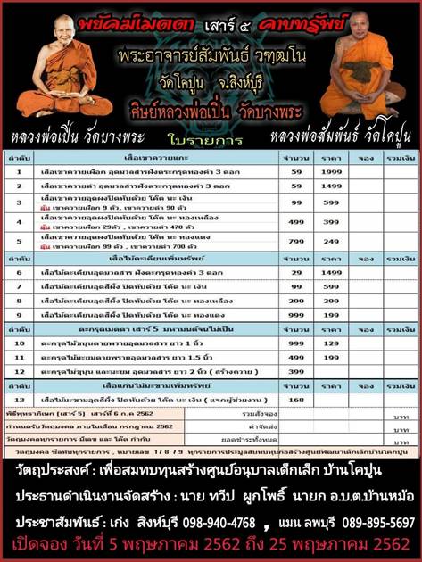 *** เปิดจอง// พยัคฆ์เมตตา เสาร์ ๕ คาบทรัพย์ พระอาจารย์สัมพันธ์ วฑฺฒโน วัดโคปูน จ.สิงห์บุรี (ศิษย์หลวงพ่อเปิ่น วัดบางพระ)