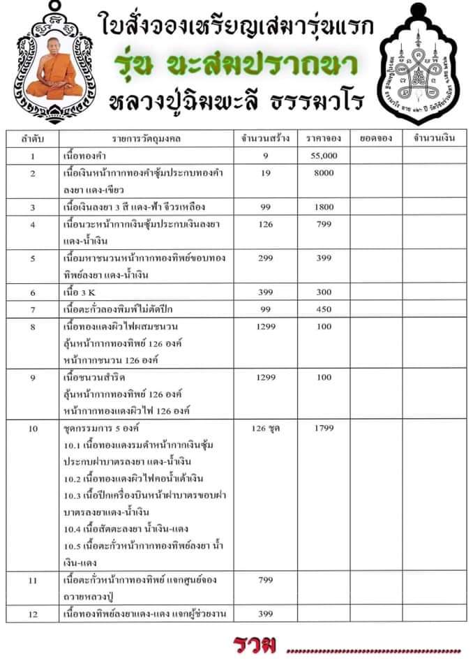 รายการ 10.ชุดกรรมการ (รับพระ 5 เหรียญ) ราคาจอง 1,799.-บาท มียอด = 5