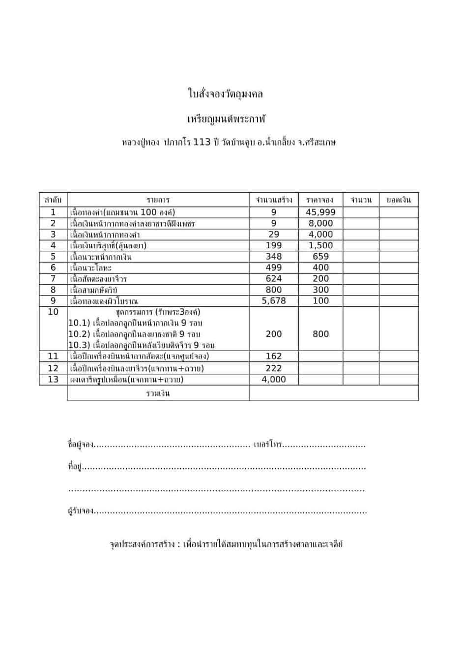 เนื้อสัตตะลงยาจีวร มียอด 5 องค์ๆละ 400 บาท