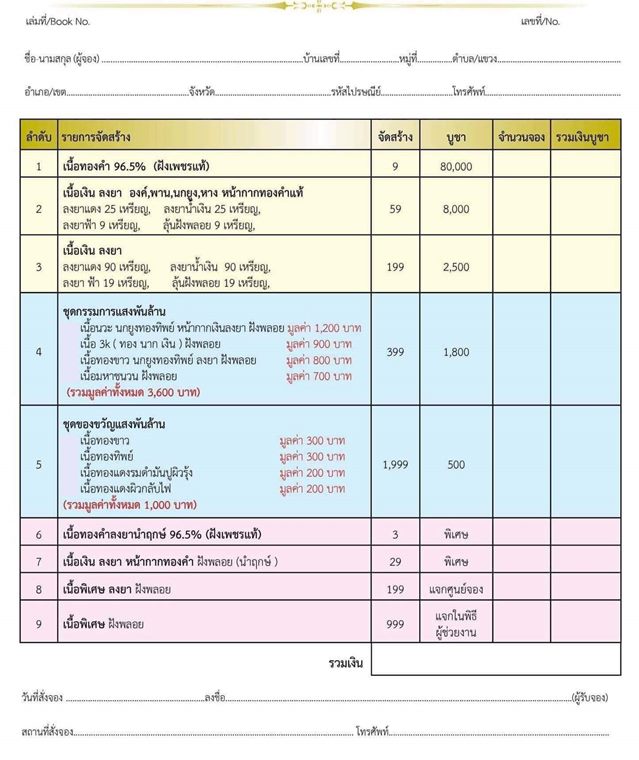 รายการ 2.เนื้อเงินลงยา องค์,พาน,นกยูง,หาง หน้ากากทองคำแท้ ราคาจอง 8,000.-บาท มียอด= สอบถาม