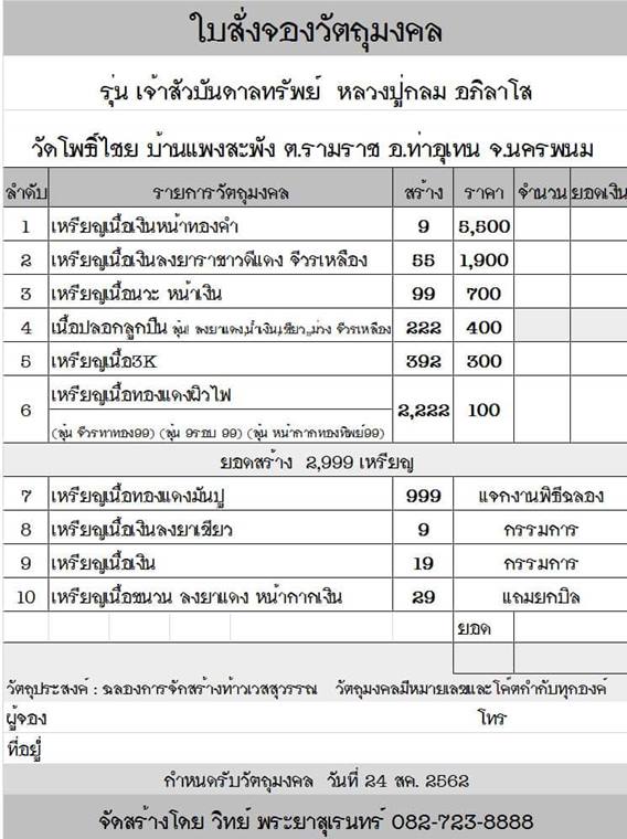 *** กำหนดรับพระ 24 สิงหาคม 2562 เป้นต้นไป