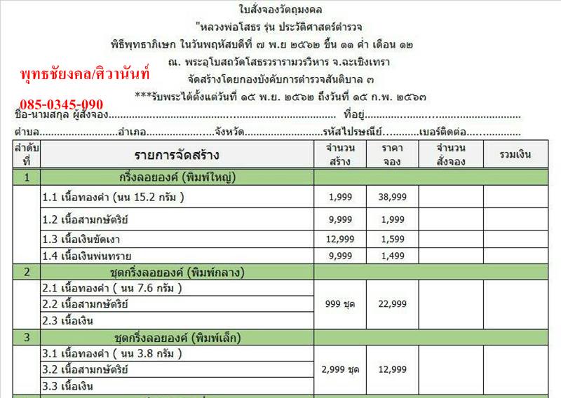 เปิดจองหลวงพ่อโสธร รุ่นประวัติศาสตร์ตำรวจ พิธีพุทธาภิเษก ในวันพฤหัสบดีที่ 7 พ.ย.62 ขึ้น 11 ค่ำ เดือน 12 ณ.อุโบสถวัดโสธรวรารามวรวิหาร จ.ฉะเชิงเทรา