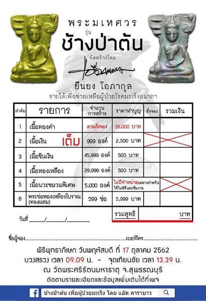 3.เนื้อชินเงิน มี 10 องค์ๆละ 500 บาท