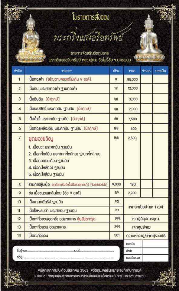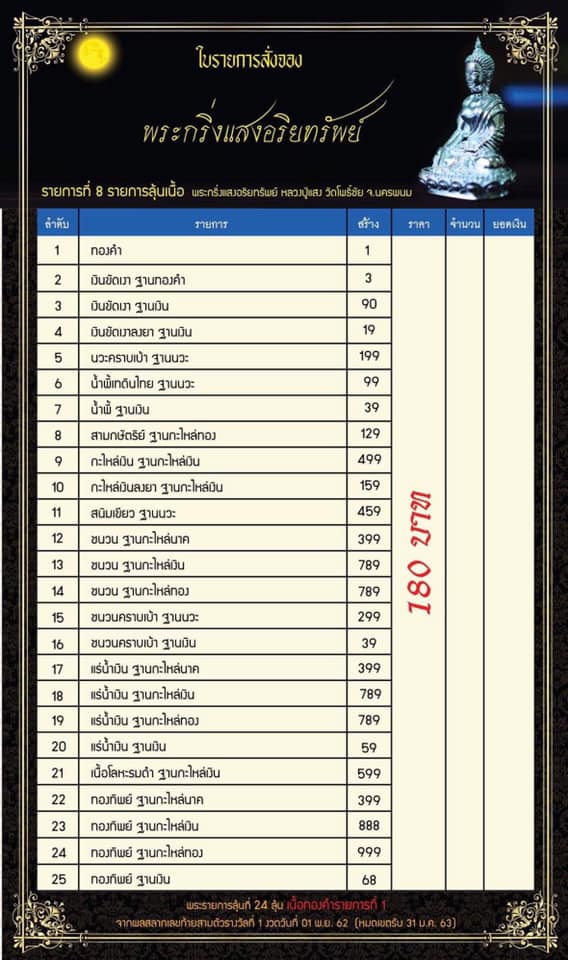 รายการลุ้นเนื้อ ราคาจององค์ละ 180บาท