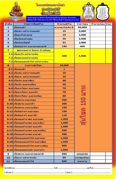รับพระช่วงเดือน พฤศจิกายน 2562