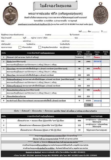 สนใจรายการไหนแจ้งบูชาจองได้ที่ใต้กระทู้ครับผม หลังจากแจ้งแล้วทางทีมงานจะส่งใบจองในนามวัดให้ครับ อย่าลืมนะครับร่วมบุญร่วมกุศลกับวัดจรเข้เผือกด้วยกันครับผม |