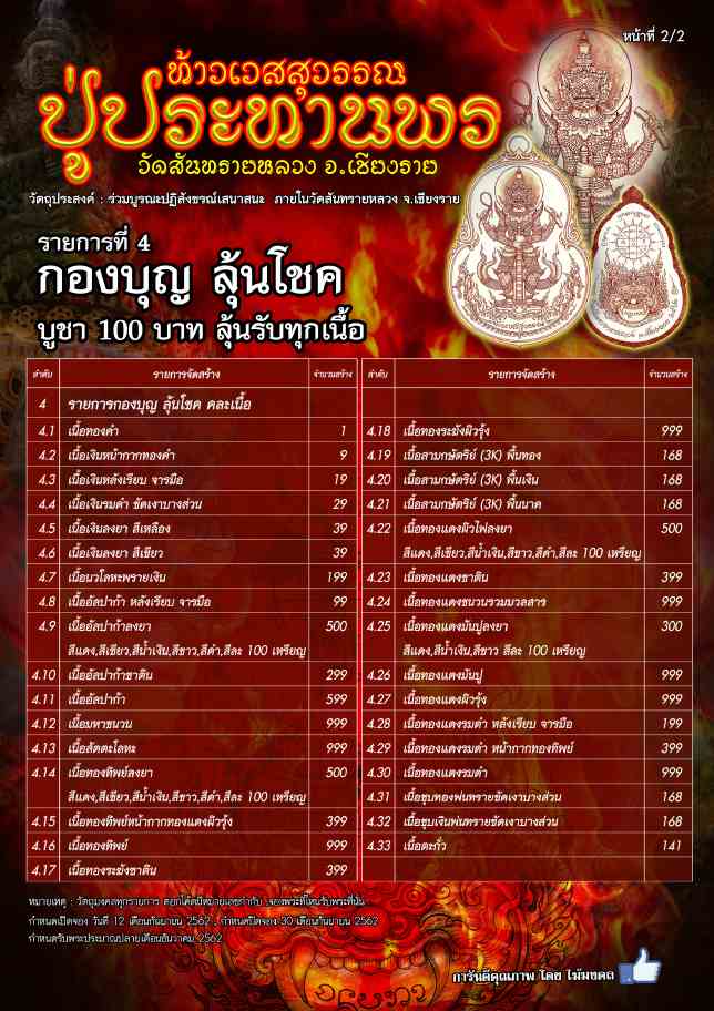 | หัวข้อกระทู้ : เปิดจอง...เหรียญท้าวเวสสุวรรณ รุ่นปู่ประทานพร วัดสันทรายหลวง จ.เชียงราย (รายการลุ้นเนื้อ 100 บาท) |