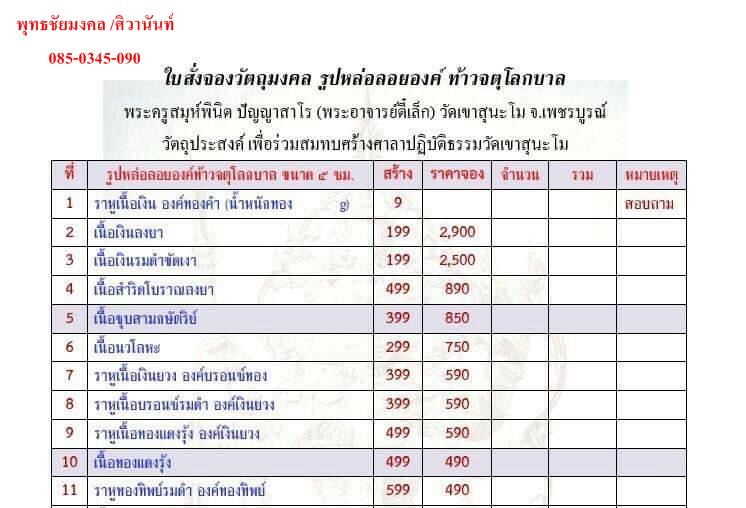 กำหนดรับวัตถุมงคล ไม่เกินเดือน มกราคม 2562