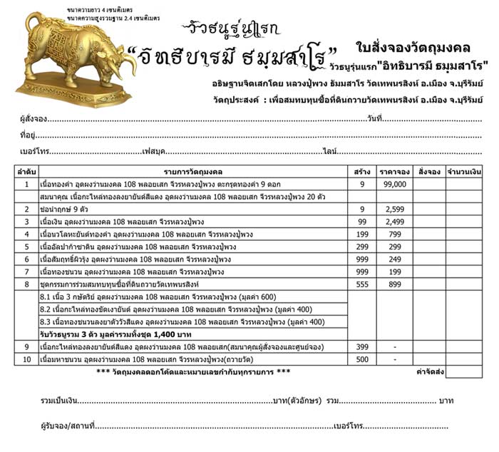 เปิดจองตามรายการราคาวัดครับ