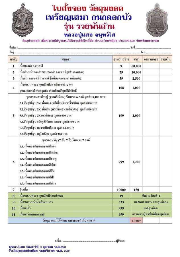 รายการ 6.ชุดของขวัญ (รับพระ 7 เหรียญ) ราคาจอง 1,200.-บาท มียอด = 5