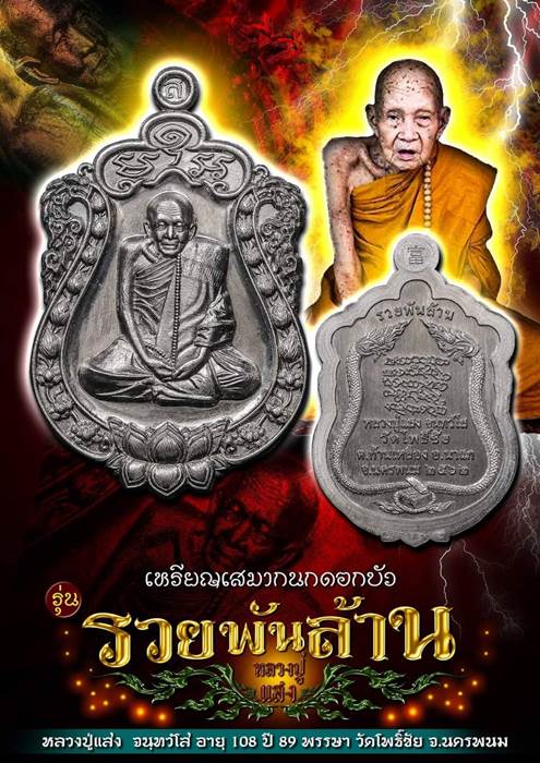 *** เปิดจอง// เหรียญเสมา กนกดอกบัว รุ่น รวยพันล้าน หลวงปู่แสง จนฺทวํโส วัดโพธิ์ชัย จ.นครพนม