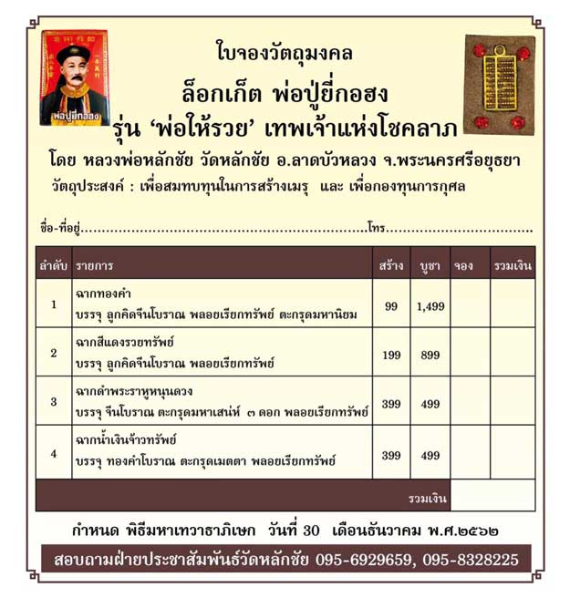 หัวข้อกระทู้ : เปิดจอง #พ่อปู่ยี่กอฮง รุ่น พ่อให้รวย