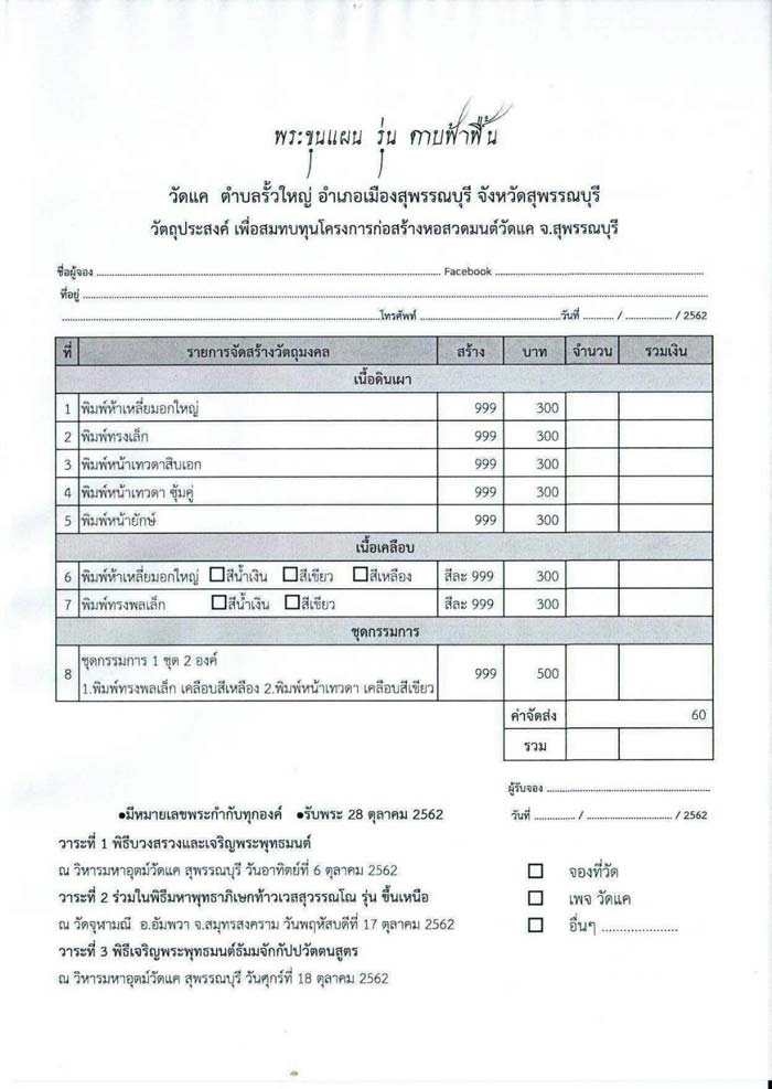 เชิญร่วมบุญกันอีกครั้งสนใจสั่งจองบูชาได้วันนี้เป็นต้นไป