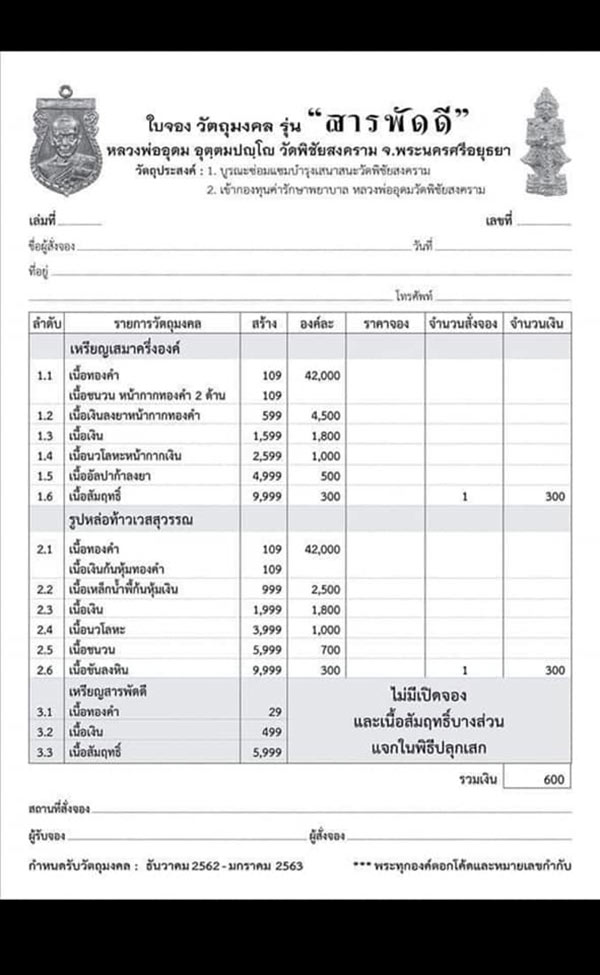 มีรายการละ 1 องค์/เหรียญ เท่านั้น ค่าจัดส่งครั้งละ 100.-