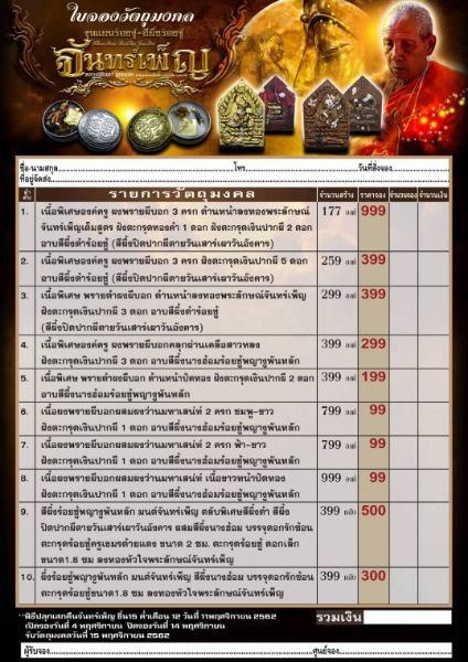 💠🌕 เปิดจองวันที่ 4 พฤศจิกายน ปิดวันที่ 14 พฤศจิกายน รับวัตถุมงคล 15 พฤศจิกายน 2562