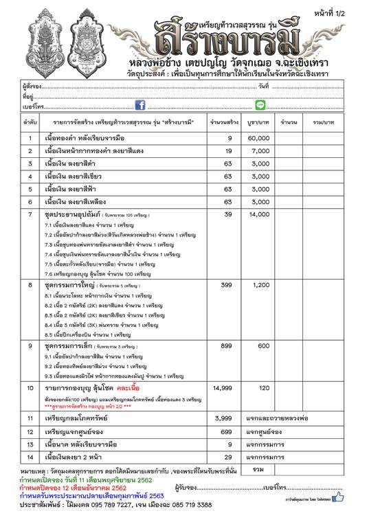 รายการ 10.กองบุญ ลุ้นโชค คละเนื้อ ราคาจอง 120.-บาท มียอด= 200