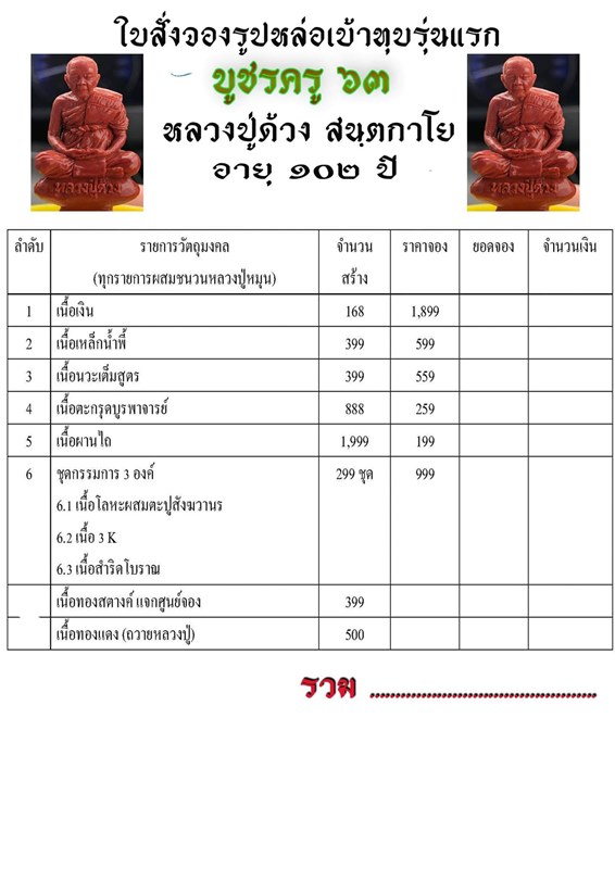 รายการ 6.ชุดกรรมการ (รับพระ 3 องค์) ราคาจอง 999.-บาท มียอด = 2