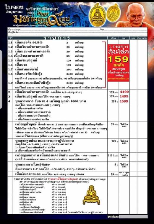 รายการ 1.ลุ้นโชค ราคาจอง 159.-บาท มียอด = 50