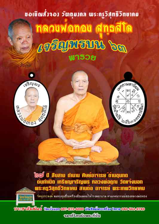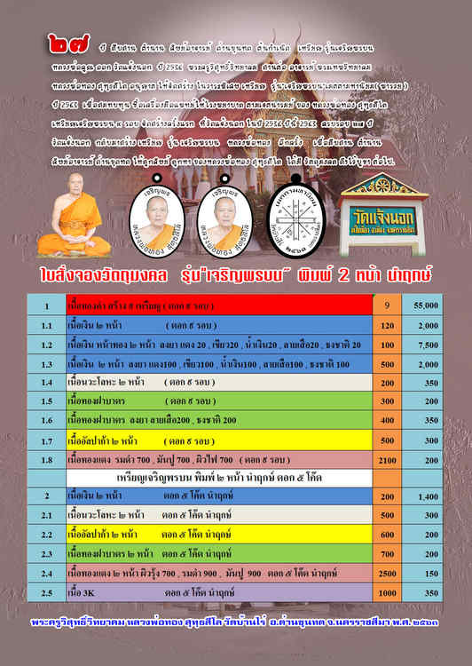 เหรียญ รุ่น เจริญพรบน พารวย วัดแจ้งนอก หลวงพ่อทอง สุทฺธสีโล วัดบ้านไร่ จ.นครราชสีมา ปี 2563