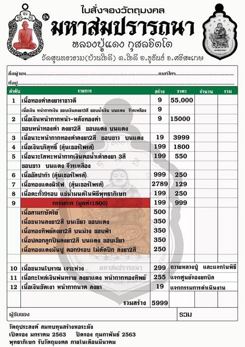 รายการ 5.เนื้อนวะโลหะหน้ากากเงินคอน้ำเต้า ลงยา 3 สี ขอบขาว บนแดง จีวรเหลือง ราคาจอง 550.-บาท มียอด = 2