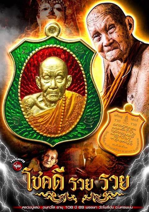 *** เปิดจอง// เหรียญรุ่น โชคดี รวย รวย หลวงปู่แสง จนฺทวํโส อายุ 108 ปี วัดโพธิ์ชัย จ.นครพนม