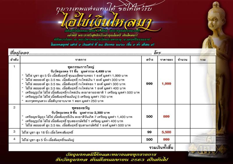 รายการ 3.ขนาดบูชา สูง 18 นิ้ว เนื้อโลหะสัมฤทธิ์ ราคาจอง 5,500.-บาท มียอด = 1