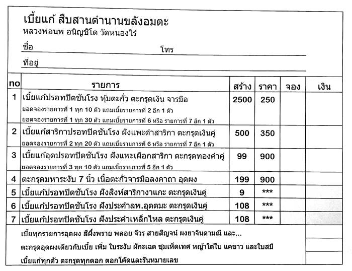 รายการ 1.เบี้ยแก้ปรอทปิดชันโรง หุ้มตะกั่ว ตะกรุดเงิน จารมือ ราคาจอง 250.-บาท มียอด = 30