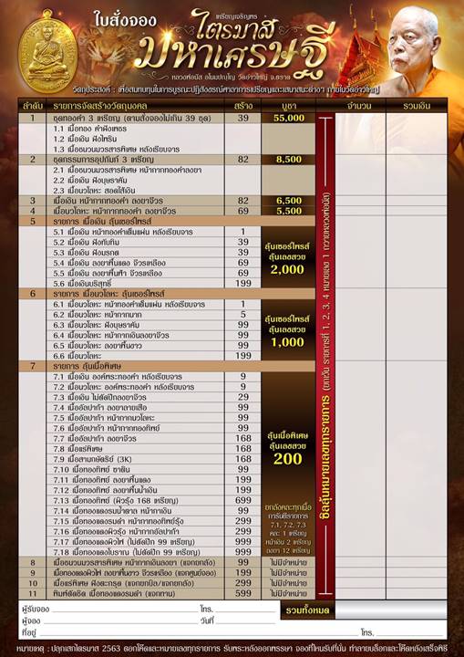 รายการ 4.เนื้อนวโลหะ หน้ากากทองคำ ลงยาจีวร ราคาจอง 5,500.-บาท มียอด = 1