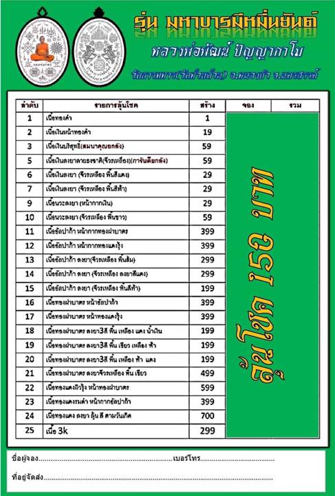 รายการ .ลุ้นโชค ราคาจอง 150.-บาท มียอด= 100
