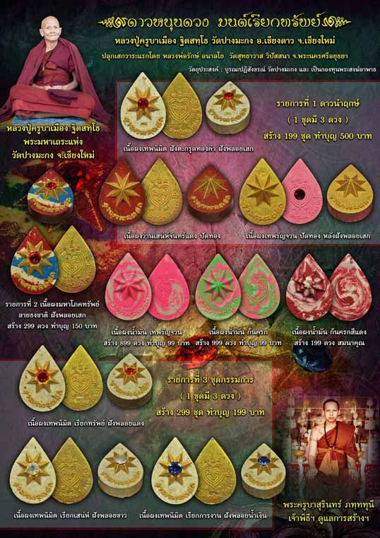 ลองลงมาจาก ดาว บรรจุทองคำ เรียกทรัพย์ เรียกวาสนา เรียกเมตตามหานิยมเป็นวิเศษนักแล