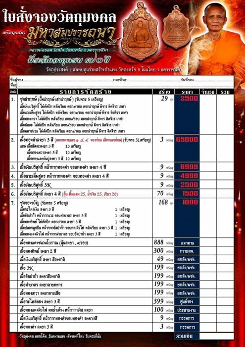 รายการ 1.ชุดนำฤกษ์ (รับพระ 5 เหรียญ) ราคาจอง 2,500.-บาท มียอด= สอบถาม