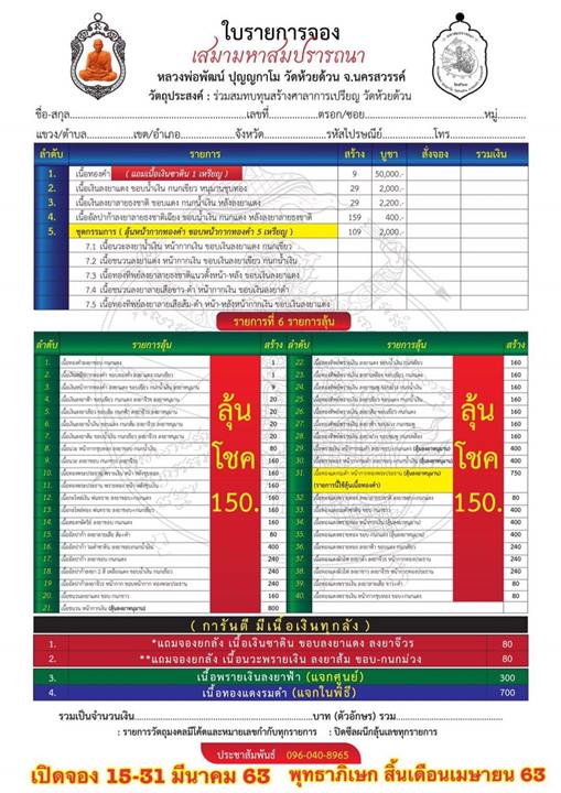 *** สมณาคุณสั่งจองยกลัง รายการลุ้นเนื้อ