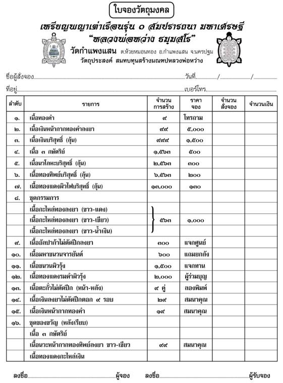 รายการ 2.เนื้อเงินหน้ากากทองคำลงยา ราคาจอง 5,000.-บาท มียอด = สอบถาม
