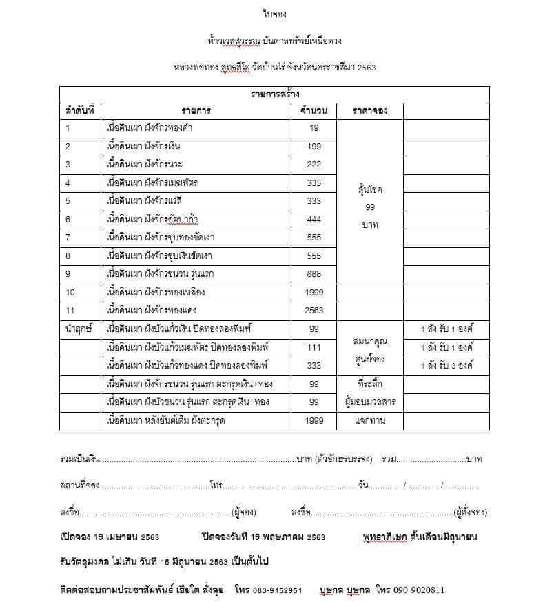 รายการลุ้นเนื้อ 200 องค์ ราคาจองอลค์ละ 99 บาท