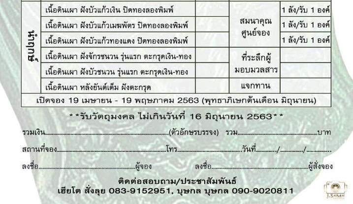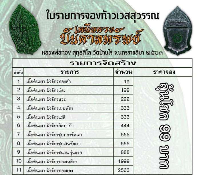 รายการลุ้นเนื้อ 75 องค์ ราคาจองอลค์ละ 99 บาท