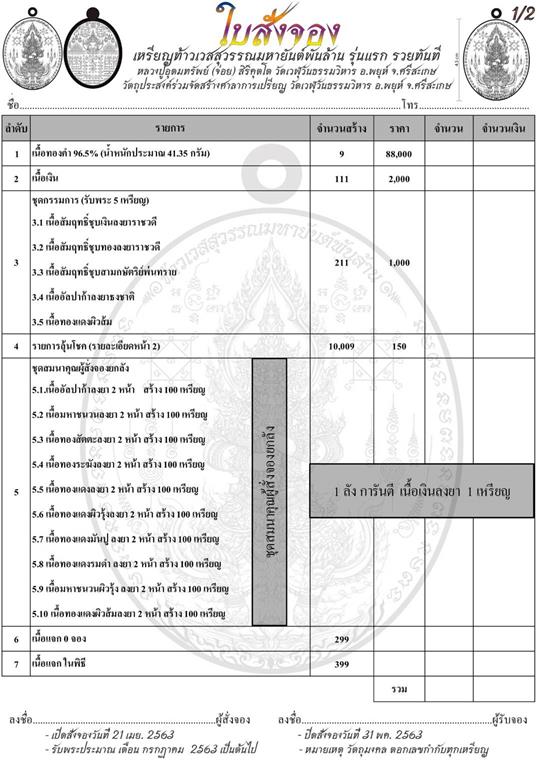 รายการ 3.ชุดกรรมการ (รับพระ 5 เหรียญ) ราคาจอง 1,000.-บาท มียอด= 10